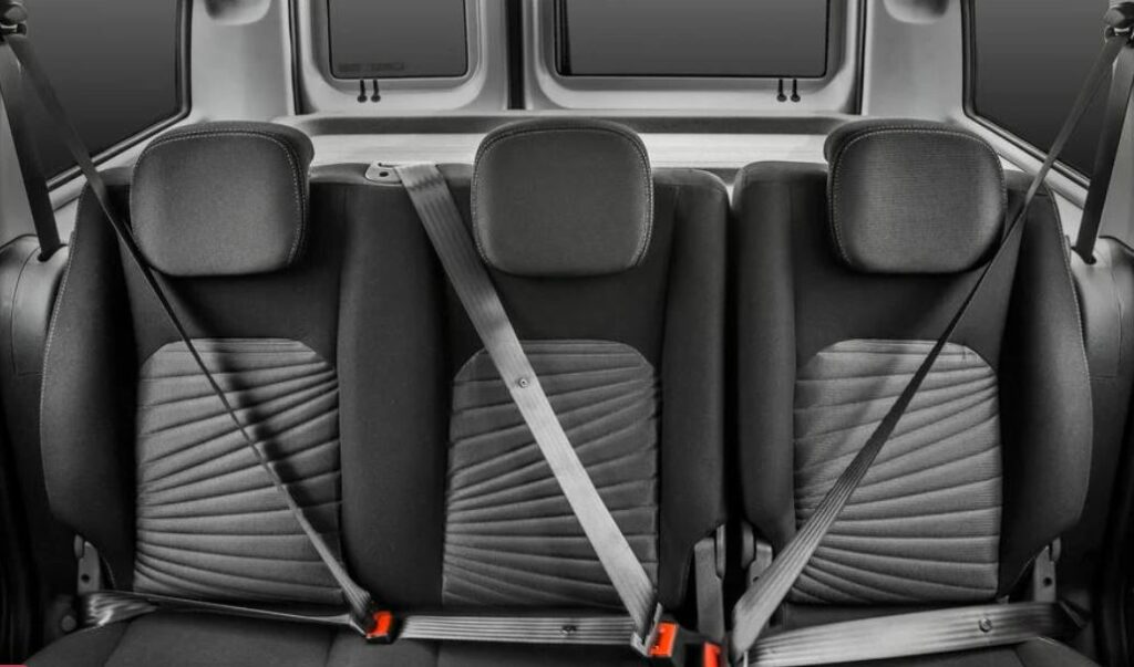 - Bancos: Os traseiros são bipartidos e rebatíveis. Também há bancos suplementares que se tornam disponíveis ao excluir a tampa de cobertura do porta-malas. Os bancos traseiros e dianteiros são dotados de cintos de três pontas;