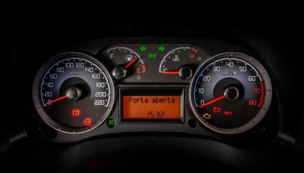- Computador de bordo que exibe a distância e o tempo durante o qual o veículo percorreu, o consumo instantâneo e médio de combustível, a autonomia e a velocidade média da Doblò;