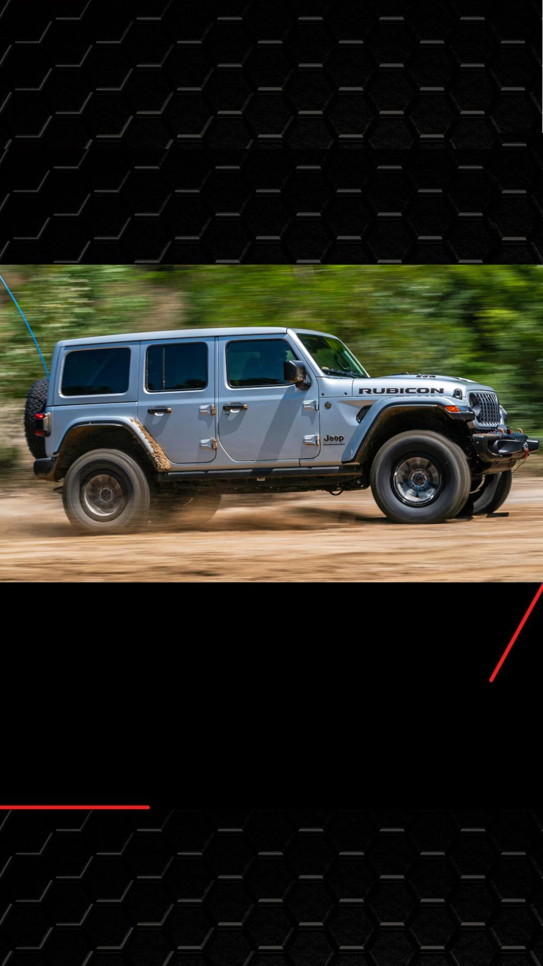O Rubicon 392 tem motor V8 6.4, 477 cv, câmbio de 8 marchas e pneus de 33”. Vai de 0 a 100 km/h em 4,5s e atravessa até 82,5 cm de água.