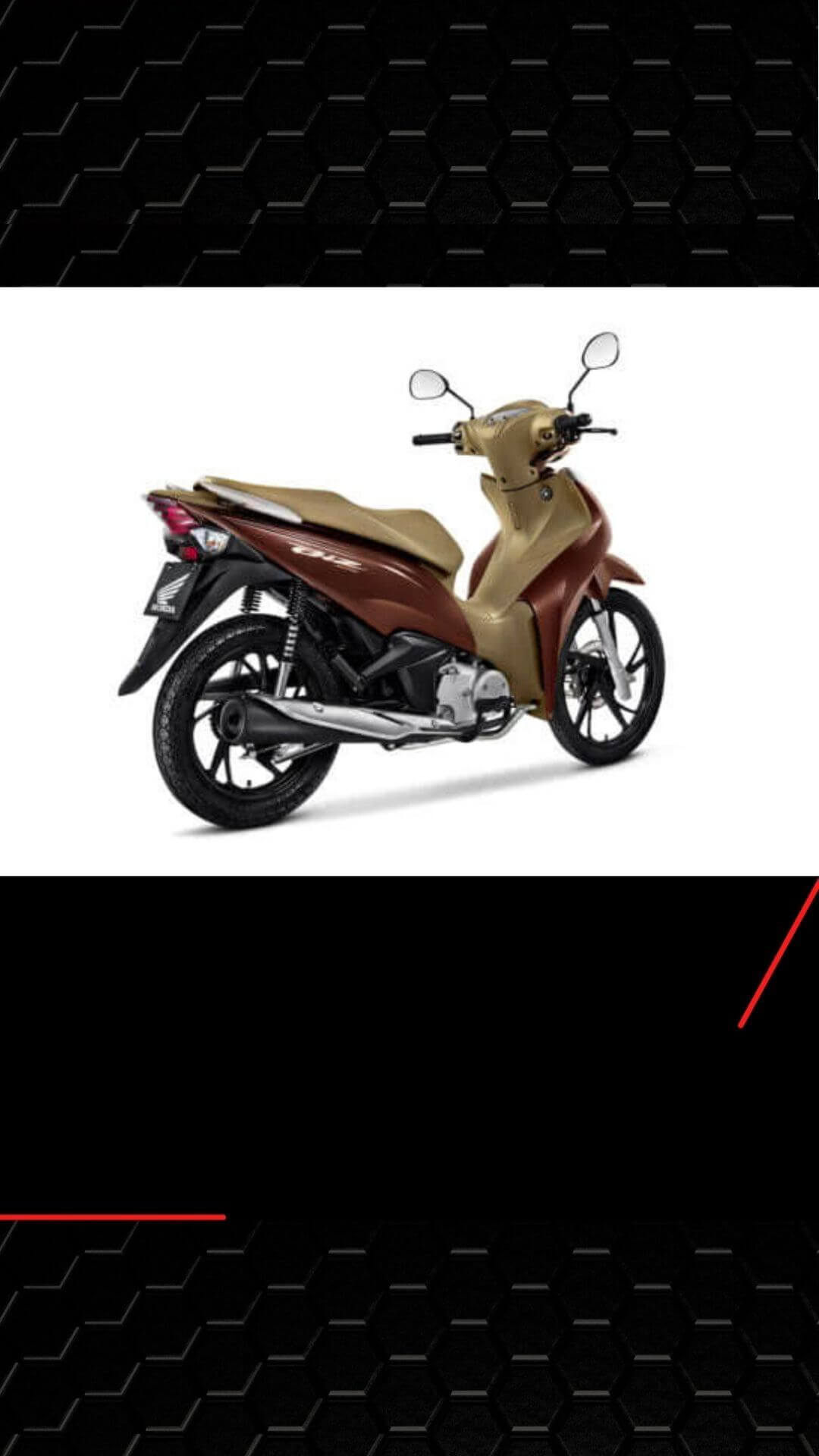Seu visual envolve todos os detalhes clássico dos modelos Biz. Porém, agora possui um ar mais moderno e sofisticado, com novas cores premium e pneus de liga leve com cinco robustos raios vazados.