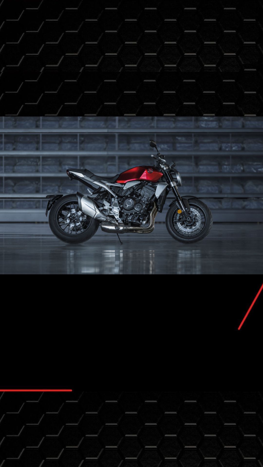 A CB 1000R possui recursos avançados, como iluminação LED, controle de torque HSTC, conectividade Honda RoadSync e quatro modos de pilotagem.