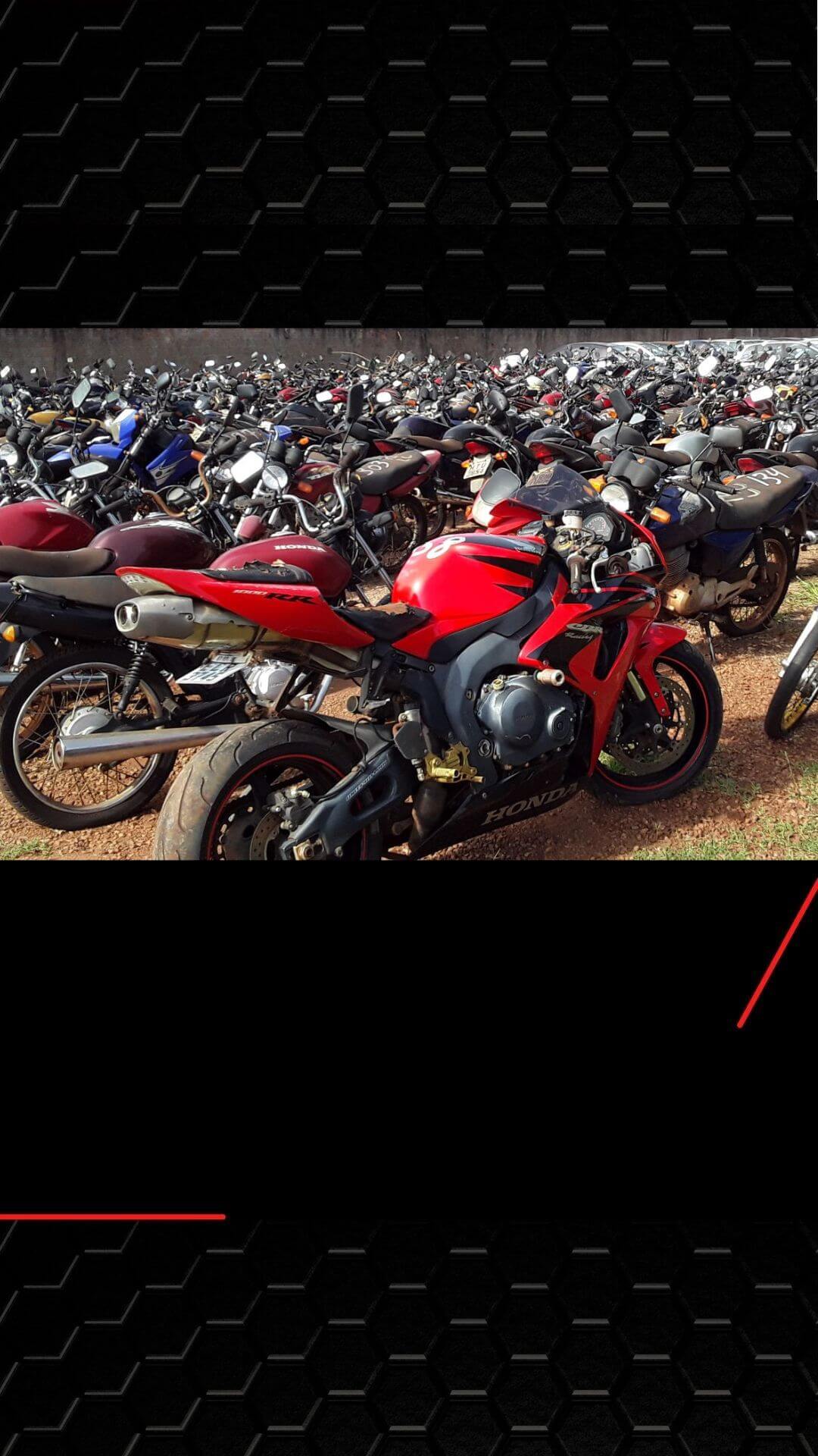 Os leilões contêm motos que foram apreendidas por alguma infração, por não estarem aptas para andar. Ou até mesmo pelo fato de os donos não pagarem as parcelas do seu financiamento.