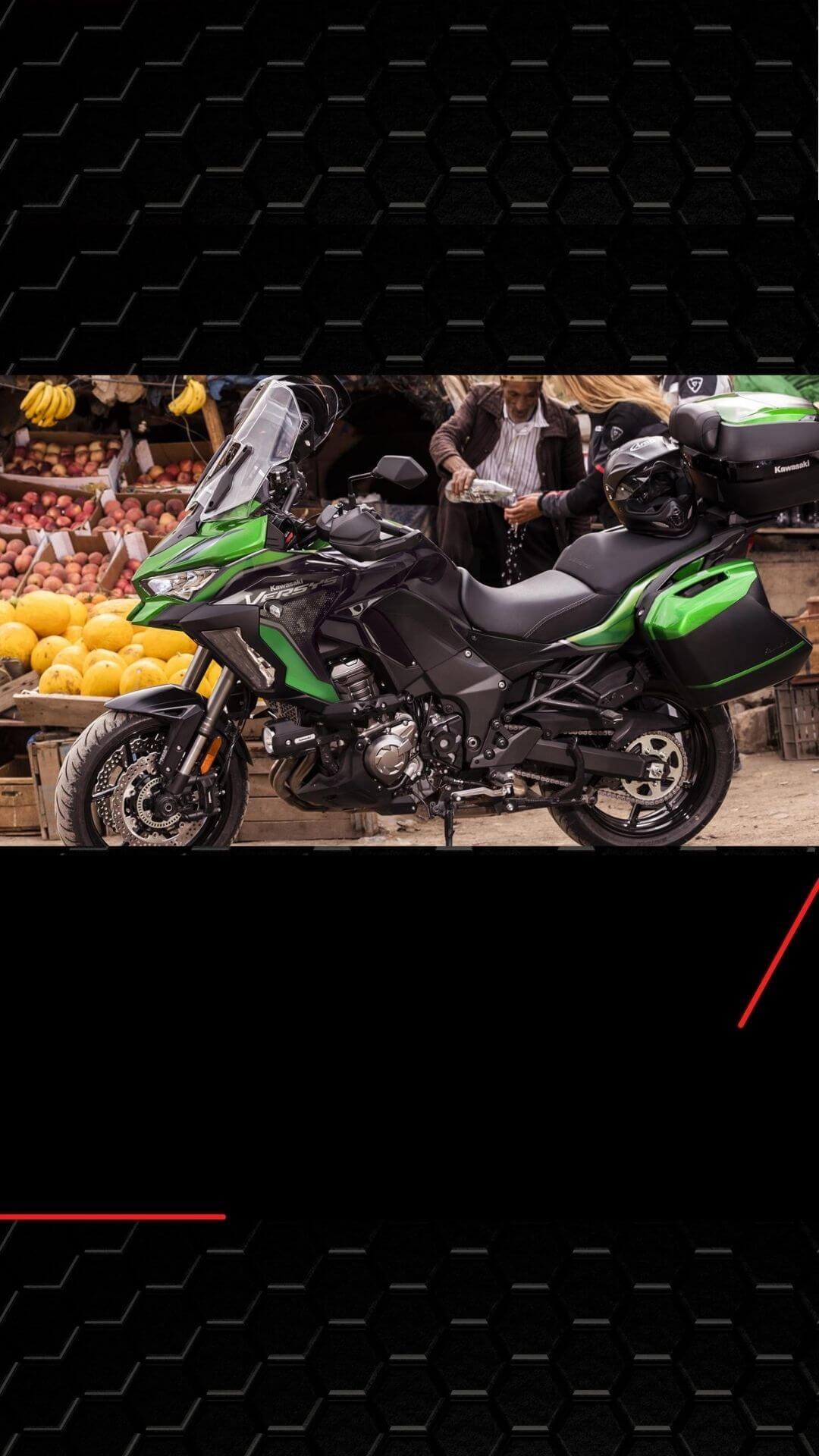 Versys 1000 2022 possui uma alimentação por injeção eletrônica que gera 120 cv a 9.000 rpm de potência com câmbio de 6 velocidades alcançando até 250 km/h.