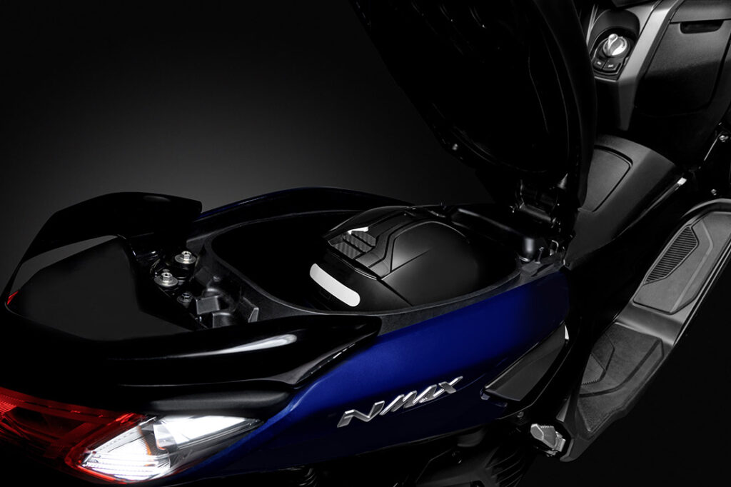 A NMax 160 2021 tem, por exemplo, um banco alongado e espaço para os pés é maior. Isso deixou a moto mais confortável para o piloto.